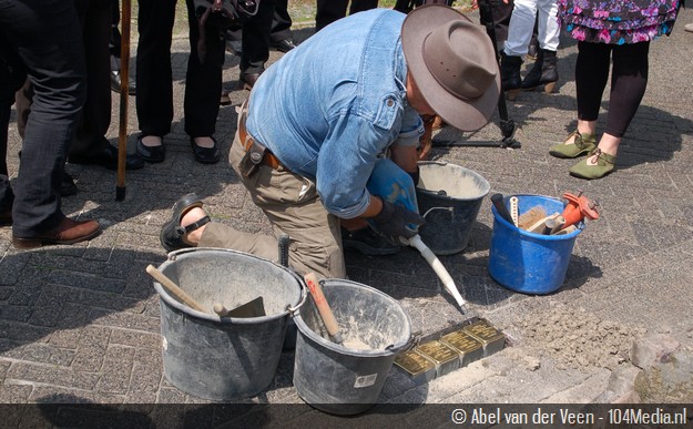PEKELA - In Pekela zijn dinsdag de eerste 40 zogeheten Stolpersteine geplaatst ter nagedachtenis aan 151 inwoners, die zijn omgekomen tijdens de Tweede Wereldoorlog. De stenen liggen in het trottoir bij de woningen waar ooit joden en verzetsstrijders woonden. De messing gedenkplaatjes werden geplaatst door de Berlijnse kunstenaar Gunter Demnig.