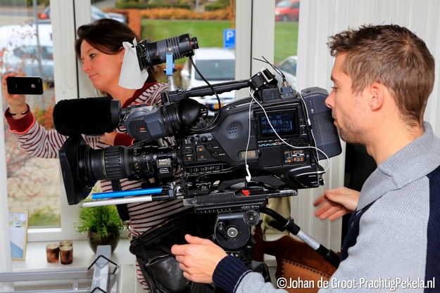 De filmploeg van SBS6 maakt opnamen voor Hart van Nederland.