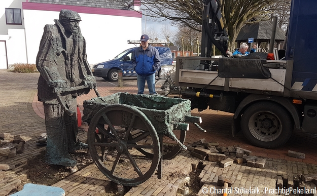 Vanmiddag wordt het overgebleven deel van de ‘Man met hondenkar’ verplaatst naar een opslag. Het kunstwerk zou sowieso al worden verplaatst in verband met de nieuwe inrichting van het centrum. Het bronzen beeld wordt gerestaureerd.