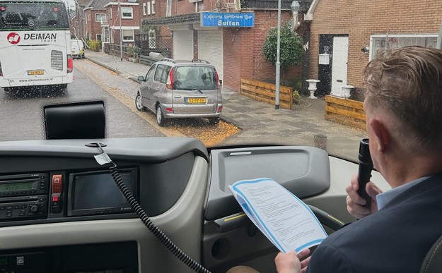 Rond elf uur vertrok de bus vanaf het gemeentehuis voor een tocht langs verschillende bezienswaardigheden. Onderweg vertelden de wethouders over markante plekken in de gemeente, zoals het standbeeld van Fré Meis, de watertoren en molen De Zwaluw.