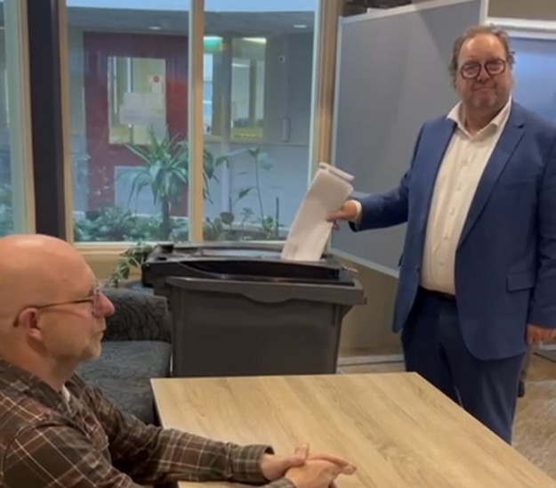 PEKELA - Burgemeester Jaap Kuin is vanmorgen langs alle 7 stembureaus in Pekela geweest. Zelf stemde hij bij het stembureau De Molenhof in Oude Pekela, waar ook de Oekraïners worden opgevangen. De burgemeester zag dat het flink druk was: op sommige plekken stonden inwoners in de rij om te kunnen stemmen.