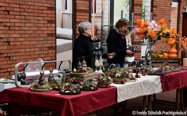 Het plein stroomde al snel vol met bezoekers die genoten van de herfstige sfeer en de vele lekkernijen. Bij Poortman werden kniepertjes vers gebakken, kinderen konden zich laten schminken en bij Boetiek Fleur trok een kleurrijke kraam met kransen en kerststukjes veel bekijks. Ook Schoenenservice Brockschmidt was van de partij met aantrekkelijke aanbiedingen.
