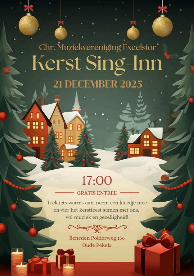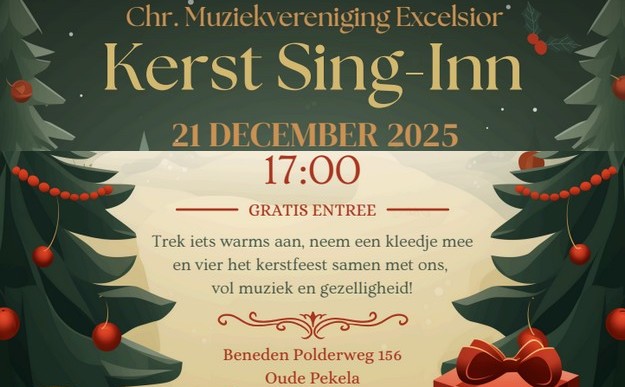 PEKELA - De feestdagen komen eraan, en dat betekent tijd voor warmte, samenzijn en muziek! Op zondag 21 december 2025 nodigt de Christelijke Muziekvereniging Excelsior iedereen van harte uit voor een sfeervolle Kerst Sing-Inn in landelijke en knusse sfeer.