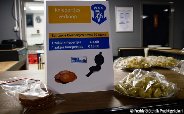 OUDE PEKELA - De feestdagen staan weer voor de deur en bij korfbalvereniging WSS in Oude Pekela wordt druk gewerkt aan de voorbereidingen. In de kantine ruikt het heerlijk naar versgebakken kniepertjes: vrijwilligers zijn al volop in de weer. Het deeg gaat er in een vlot tempo door en de kniepertjes zien er niet alleen fantastisch uit, ze smaken straks nog beter.