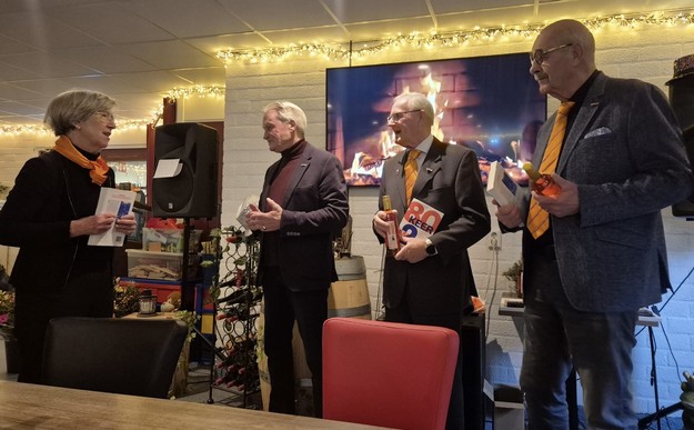 PEKELA - Op 21 november heeft het Oranje Bevrijdings Comité Pekela (OBCP) afscheid genomen van drie langdurig betrokken bestuursleden. Voorzitter Andries Brans en PR-manager Gerard Brunink traden na tien jaar terug, terwijl penningmeester Henk Westers na maar liefst twintig jaar zijn functie neerlegde. De stichting sprak grote waardering uit voor hun jarenlange inzet en betrokkenheid.