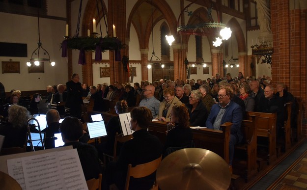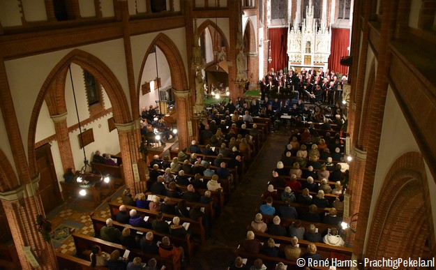 OUDE PEKELA - Zaterdagavond vond in de Willibrorduskerk in Oude Pekela de 61e editie van de Volkskerstzang plaats, een geliefde traditie die jaarlijks veel bezoekers trekt. Dit jaar stond de bijeenkomst in het teken van het thema ‘Elke dag een nieuw begin’. Aan de Volkskerstzang werd meegewerkt door het Groninger Christelijk Mannenkoor Albatros onder leiding van Bouke Tiggelaar en door de Christelijke Muziekvereniging Excelsior, gedirigeerd door Bauke Burghgraef.