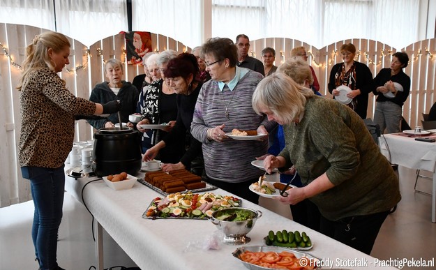 In MFC De Binding in Oude Pekela werden maar liefst 120 gasten verwelkomd. Aan lange tafels, in een warme en sfeervol aangeklede ruimte, genoten bezoekers van een uitgebreide brunch. Op het menu stonden onder andere groentesoep, diverse broodjes, kroketten, eieren en salades. Tussen het eten door was er volop gelegenheid om bij te praten, wat zorgde voor een gezellige en ontspannen sfeer.