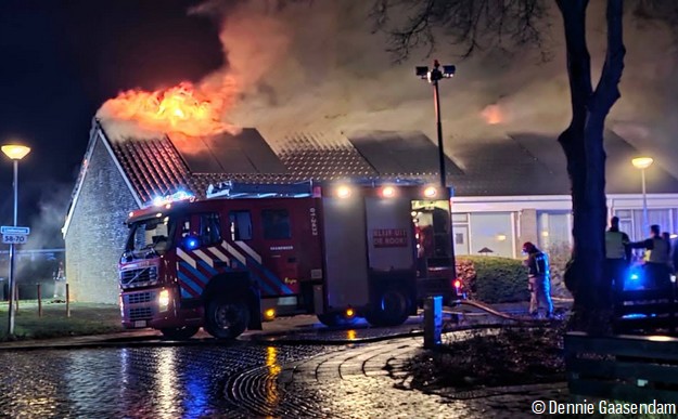 NIEUWE PEKELA - In de nieuwjaarsnacht is even na 02.00 uur brand uitgebroken in het dak van een woning aan de Lindenlaan in Nieuwe Pekela. Vanwege de omvang van het vuur schaalde de brandweer al snel op naar grote brand. De brand breidde zich razendsnel uit en sloeg over naar meerdere naastgelegen aanleunwoningen. De getroffen huizen kunnen als verloren worden beschouwd. Enkele bewoners zijn ter plaatse gecontroleerd op rookinhalatie. Alle bewoners, voornamelijk ouderen, wisten hun woningen op tijd te verlaten. Zij zijn opgevangen door familie of hebben ander onderdak aangeboden gekregen.
