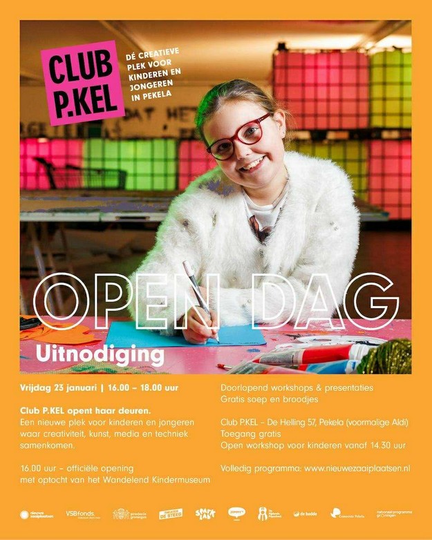 OUDE PEKELA - Club P.KEL, de nieuwe creatieve ontmoetingsplek voor kinderen en jongeren in Pekela, opent op vrijdag 23 januari officieel haar deuren. Iedereen is welkom om tussen 16.00 en 18.00 uur een kijkje te komen nemen tijdens de open dag aan De Helling 57 (het voormalige Aldi-pand).