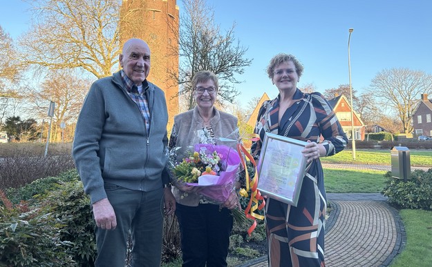 OUDE PEKELA - Wethouder Ellen van Klaveren feliciteerde dinsdagmiddag 14 januari Coenraad Meindert (81) en Elizabeth de Wal (80) met hun 60-jarig huwelijk. Als bijzonder aandenken aan deze mijlpaal overhandigde zij het echtpaar hun huwelijksakte om samen terug te blikken op hun trouwdag.