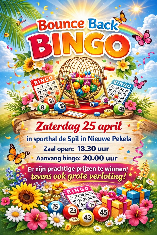 NIEUWE PEKELA - Dansteam Bounce Back houdt op zaterdag 25 april opnieuw een bingoavond in Sporthal De Spil. Na het succes van de eerste editie vorig jaar komt er nu een vervolg, met prijzen, een grote verloting en een optreden van het wedstrijdteam.