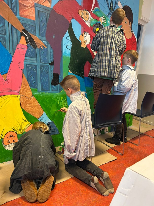 BOVEN PEKELA - Afgelopen week was de Nicaraguaanse kunstenaar Manuel uitgenodigd op de Theo Thijssen school in Nieuwe Pekela. Vooraf mochten de kinderen hun toekomstbeeld van de wereld tekenen zoals zij denken dat de wereld eruitziet in 2040. Manuel heeft deze tekeningen verwerkt tot een compositie. Vorige week mochten de kinderen in kleine groepjes samen met de kunstenaar schilderen. Dit gebeurde op 3 grote houten panelen.