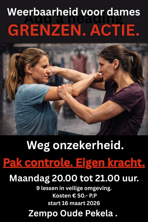 OUDE PEKELA - Je hoort en leest het steeds vaker in het nieuws: vrouwen voelen zich niet altijd veilig op straat. Dat raakt ons. En daarom komen wij weer met onze weerbaarheidstraining speciaal voor dames! Wij willen jou helpen om sterker, zekerder en zelfbewuster in het leven te staan.