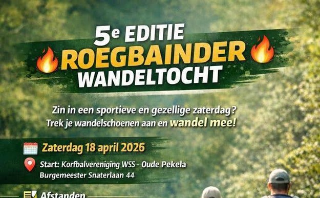 PEKELA - Wandelliefhebbers kunnen zaterdag 18 april weer op pad tijdens de vijfde editie van de Roegbainder Wandeltocht. De tocht voert deelnemers door en rond de gemeente Pekela en is inmiddels uitgegroeid tot een bekend evenement in de regio. Start en finish zijn opnieuw bij de kantine van Korfbalvereniging WSS aan de Snaterlaan in Oude Pekela. De organisatie heeft vier afstanden uitgezet: 5, 10, 15 en 25 kilometer.