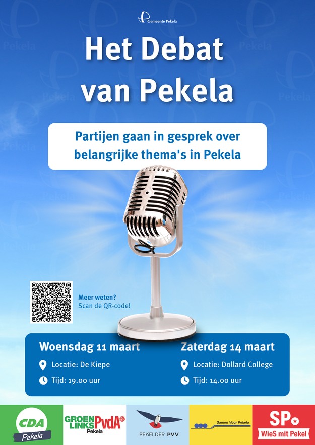 PEKELA - In aanloop naar de gemeenteraadsverkiezingen organiseert de gemeente Pekela twee verkiezingsdebatten onder de titel Het Debat van Pekela. Op woensdag 11 maart en zaterdag 14 maart gaan de politieke partijen met elkaar in gesprek over hun plannen en ambities voor de toekomst van Pekela.