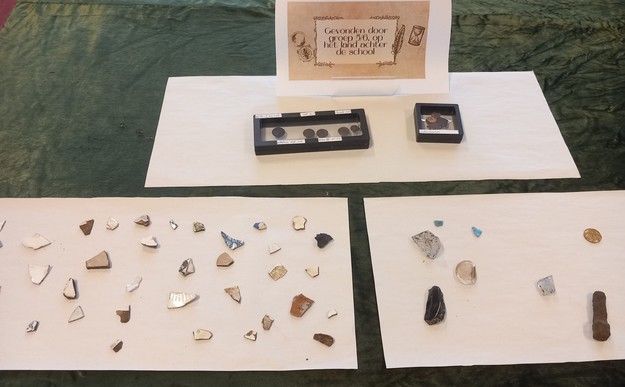 5/6 ging met een metaaldetector op het weiland achter de school op zoek naar