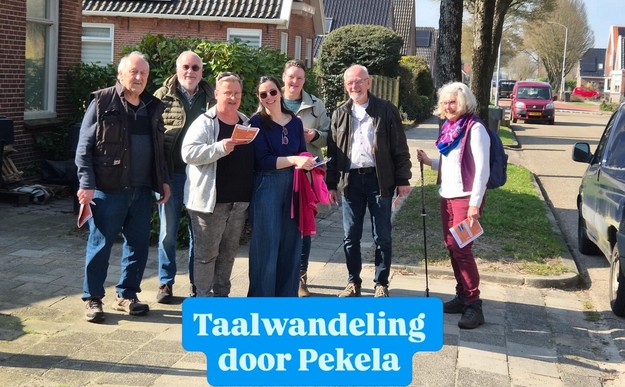 OUDE PEKELA - Afgelopen donderdag vond in Pekela een Taalwandeling plaats. Onder begeleiding van de Taalhuiscoördinator trok een enthousiaste groep deelnemers door het dorp, gewapend met een boekje vol vragen en een woordenbingo.