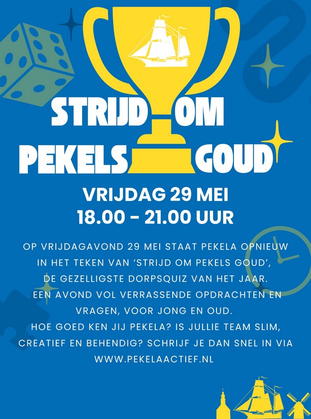 PEKELA - Op vrijdagavond 29 mei staat Pekela opnieuw in het teken van de dorpsquiz Strijd om Pekels Goud. Het populaire evenement belooft ook dit jaar weer een avond vol gezelligheid, verrassende opdrachten en uitdagende vragen over het dorp en de omgeving.