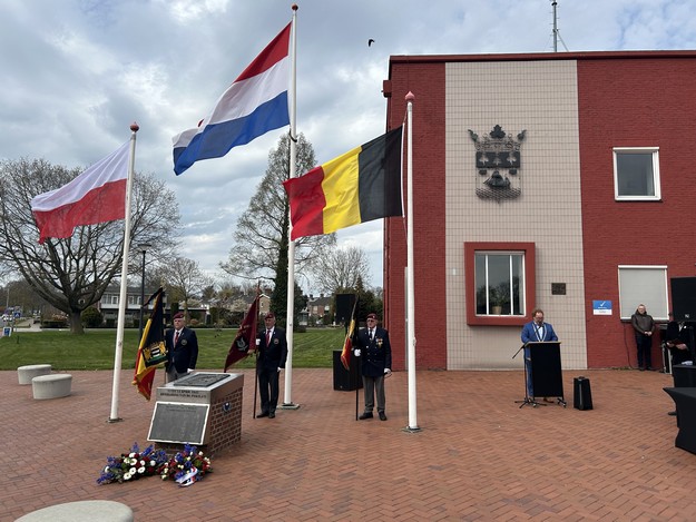 hielden een toespraak en legden bloemen bij het bevrijdingsmonument voor het