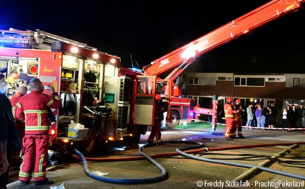 OUDE PEKELA - Zondagavond rond 21.30 uur werd de brandweer gealarmeerd voor een woningbrand aan de Ring in Oude Pekela. De brandweer van Oude Pekela was als eerste aanwezig en startte direct met de inzet. Al snel werd ondersteuning gevraagd van de hoogwerker uit Winschoten. Vanwege de ernst van de situatie werd opgeschaald naar middelbrand. Ook de brandweer van Nieuwe Pekela sloot aan om te helpen.