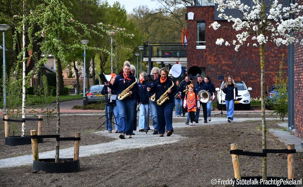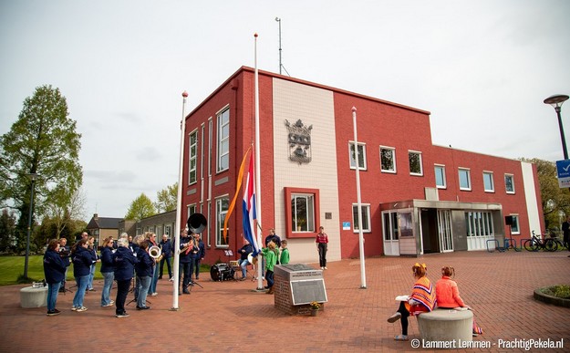 PEKELA - In de gemeente Pekela is vandaag volop Koningsdag gevierd. Traditiegetrouw trokken leden van het Oranje Bevrijdingscomité, Muziekvereniging Excelsior en burgemeester Jaap Kuin langs de verschillende Pekela’s voor een reeks korte, feestelijke ceremonies. Ook de wethouders Ellen van Klaveren en Reiny Kuiper waren erbij aanwezig.
