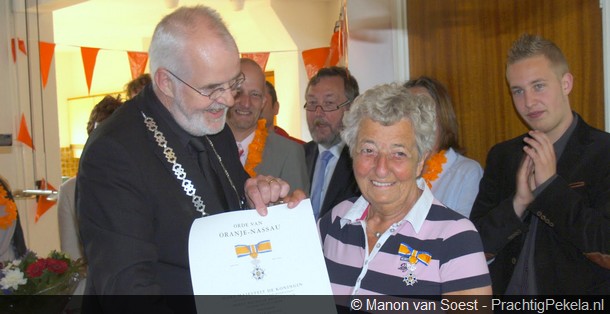 Drie Pekelders hebben vrijdag een Koninklijke onderscheiding uitgereikt gekregen door burgemeester Meindert Schollema. Het gaat om mevrouw Plaggenborg-Fruitema, mevrouw Hopster-Reintke en de heer Hoppentocht. Allen zijn benoemd tot Lid in de Orde van Oranje-Nassau.